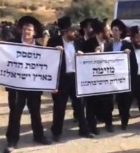 Several hundred Orthodox men demonstrated outside the IDF’s Prison 6 in Atlit Monday morning, Dec. 9, in protest at the ongoing detention of two yeshiva students who were arrested for failing to report for military duty.